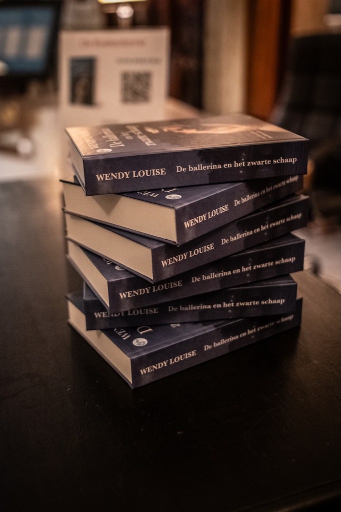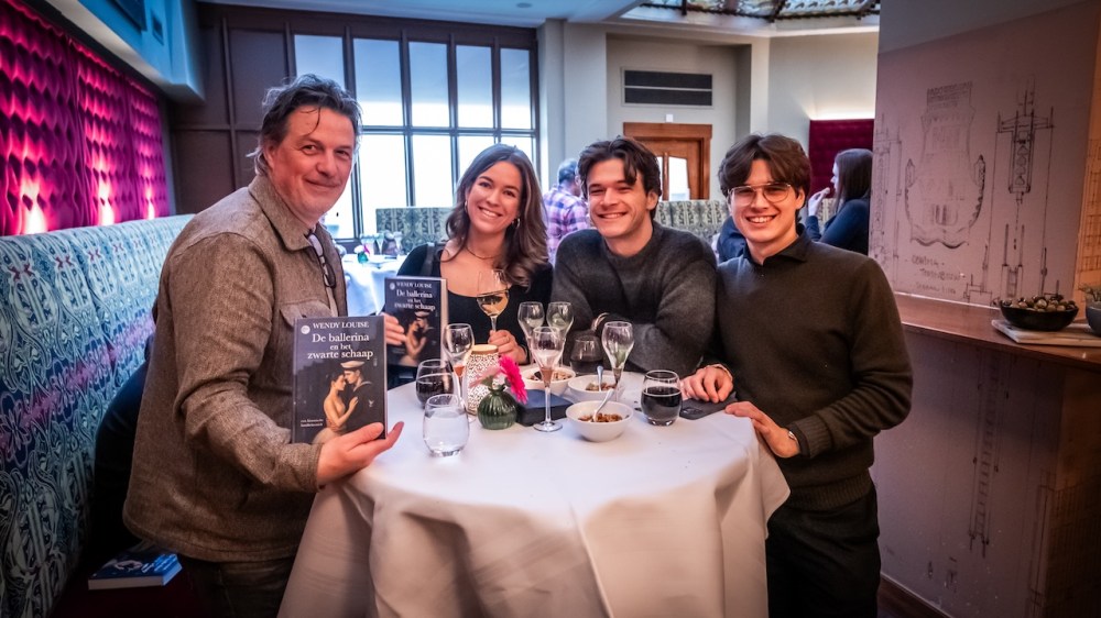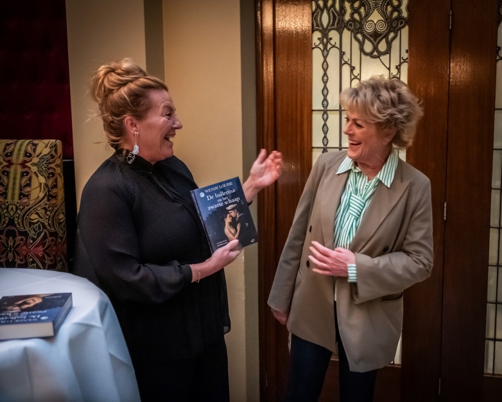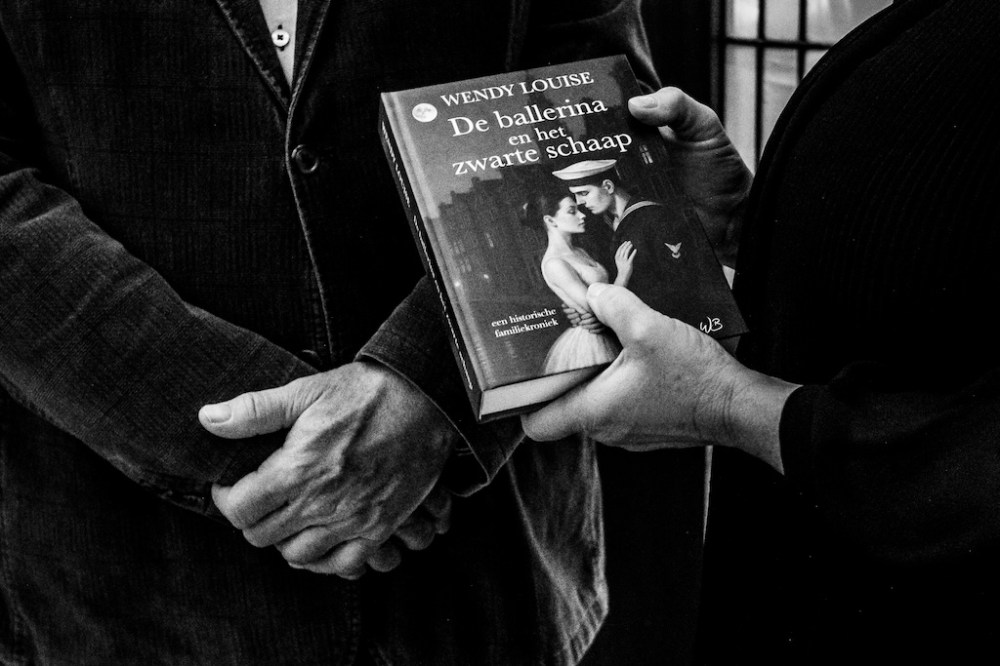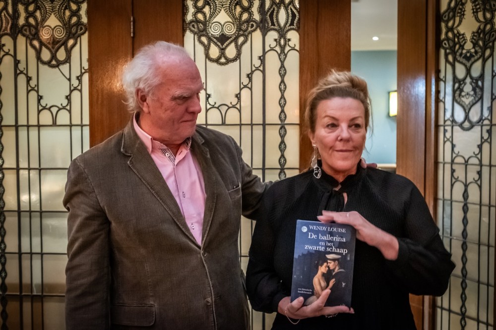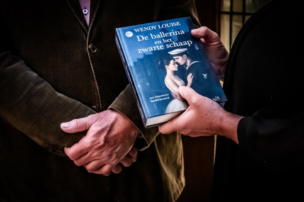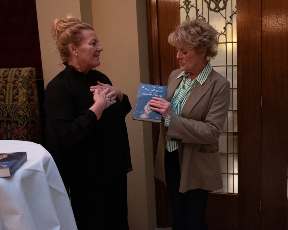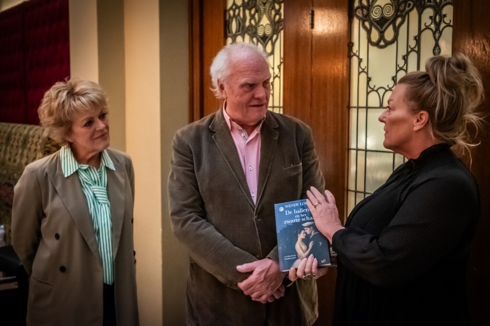 Wendy Louise overhandigde de eerste exemplaren van De ballerina en het zwarte schaap aan Sandor en Simone Kleinsma.