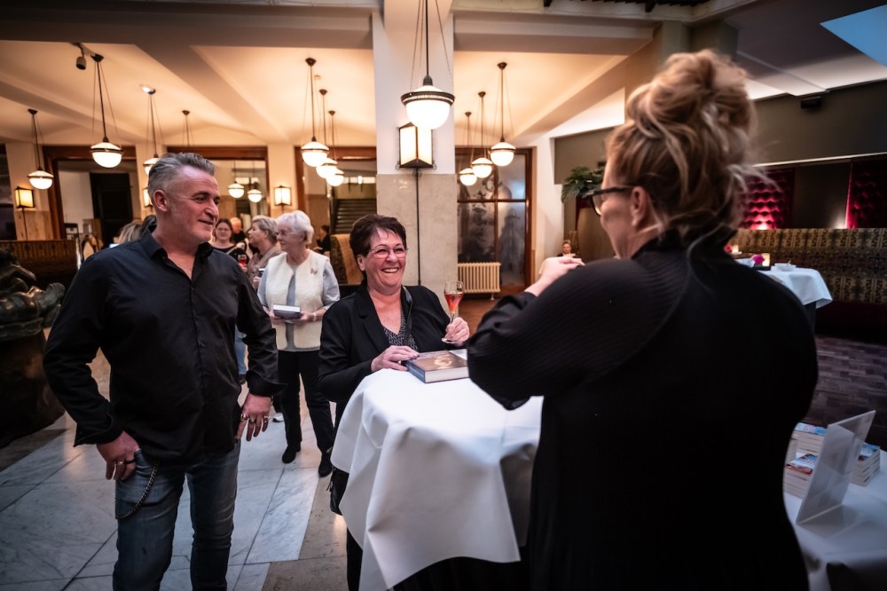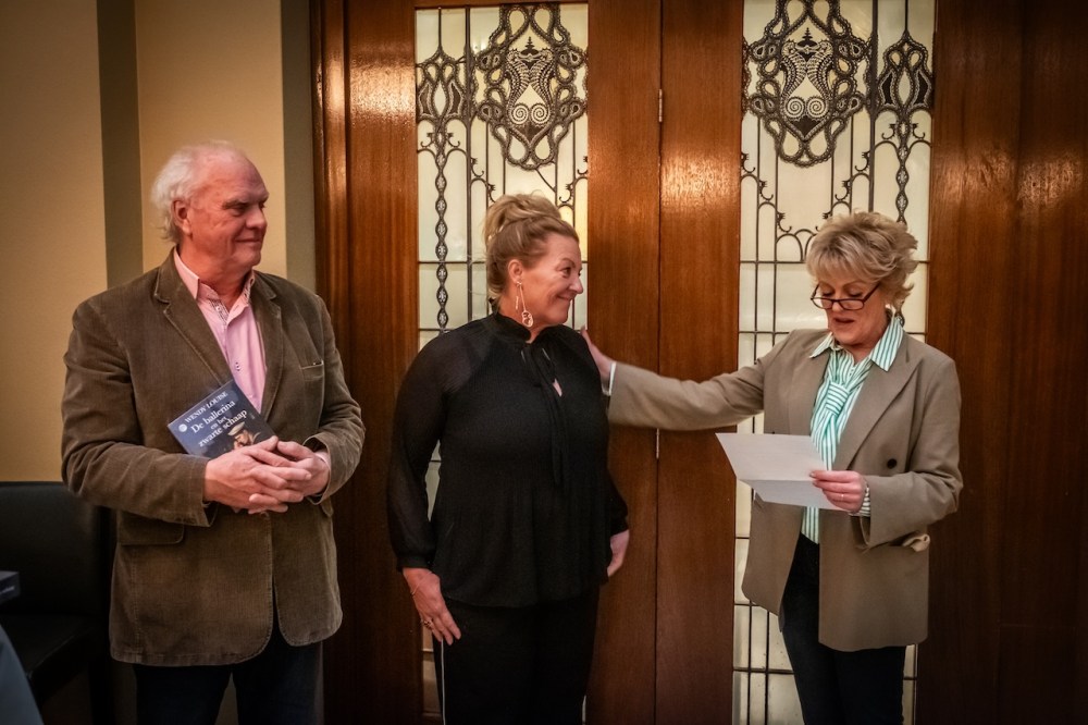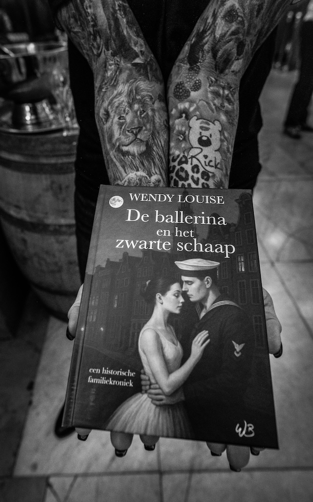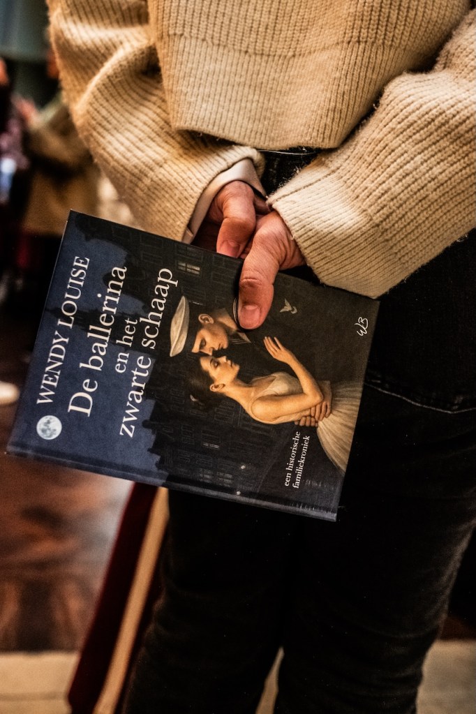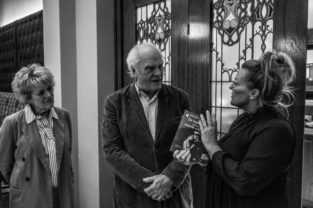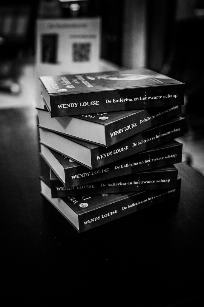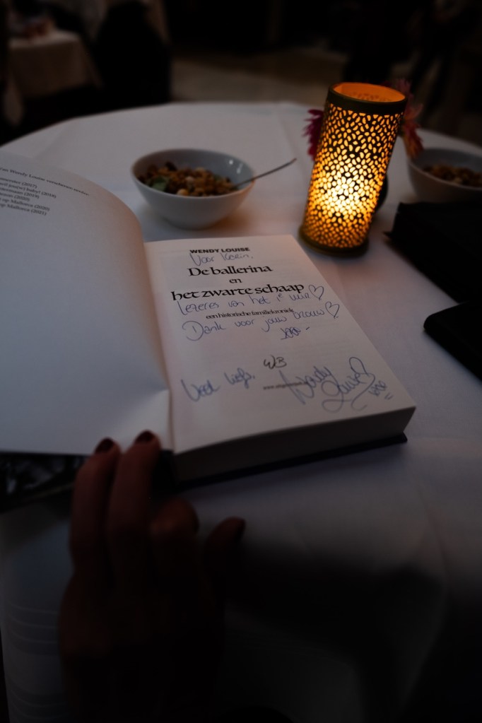 Wendy Louise overhandigde de eerste exemplaren van De ballerina en het zwarte schaap aan Sandor en Simone Kleinsma.