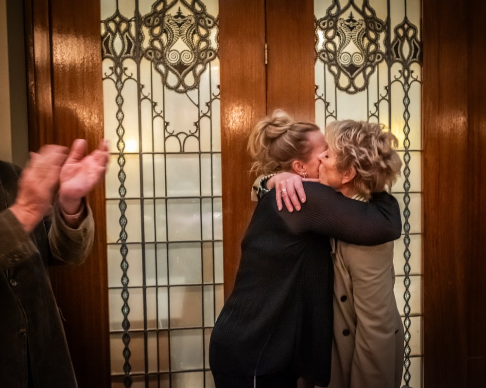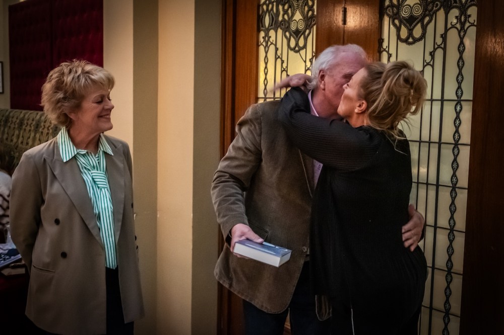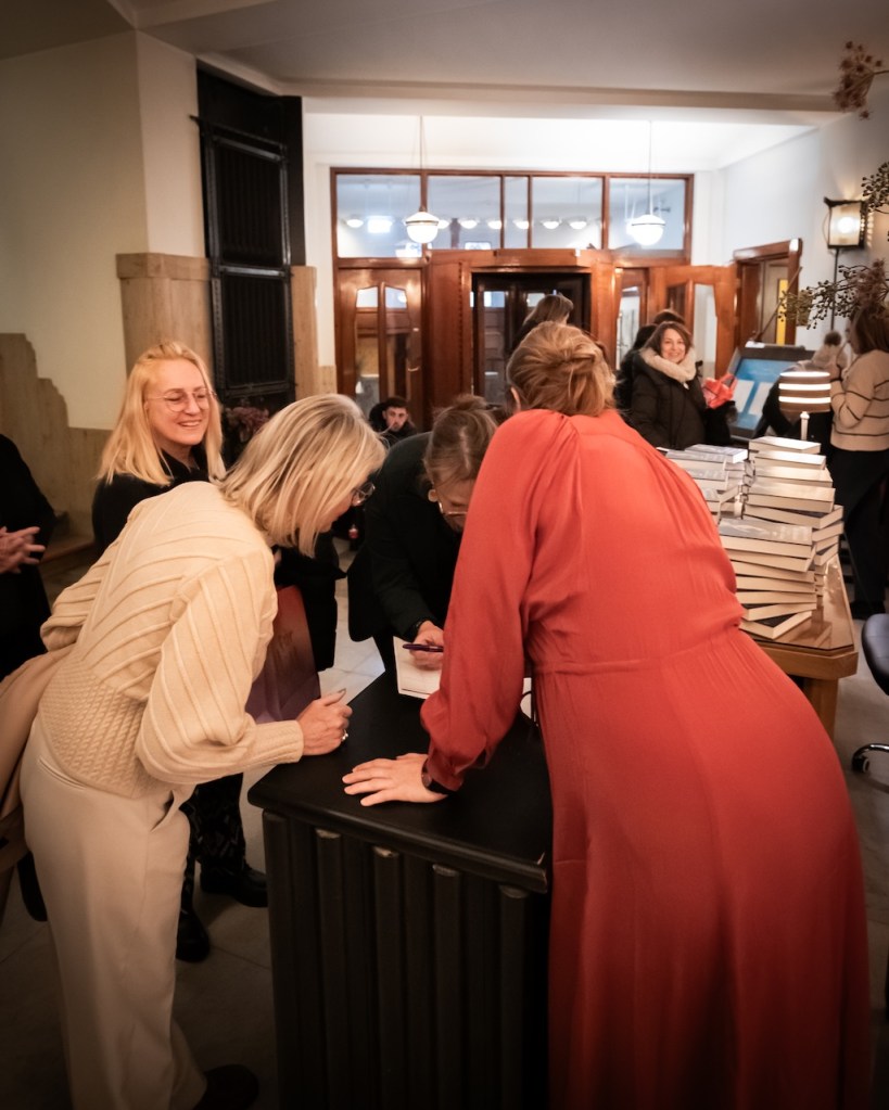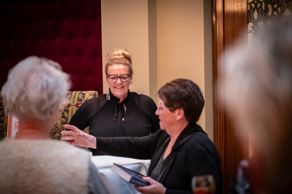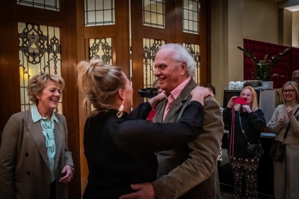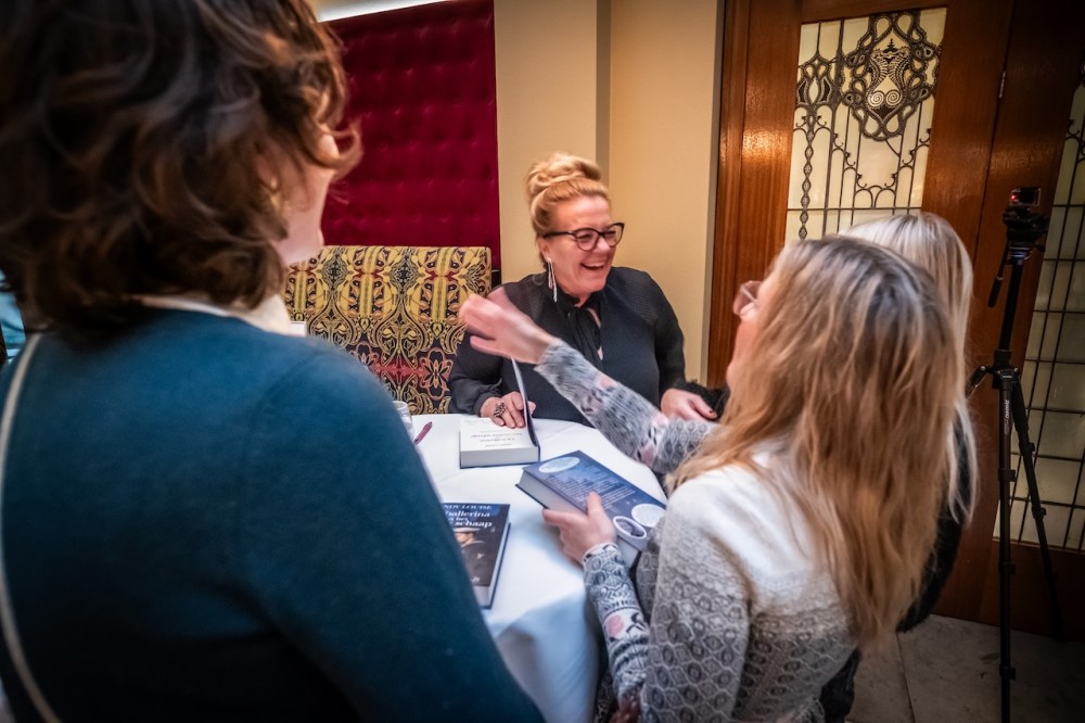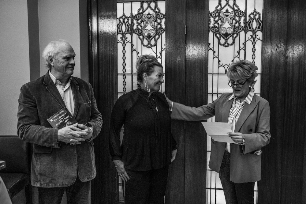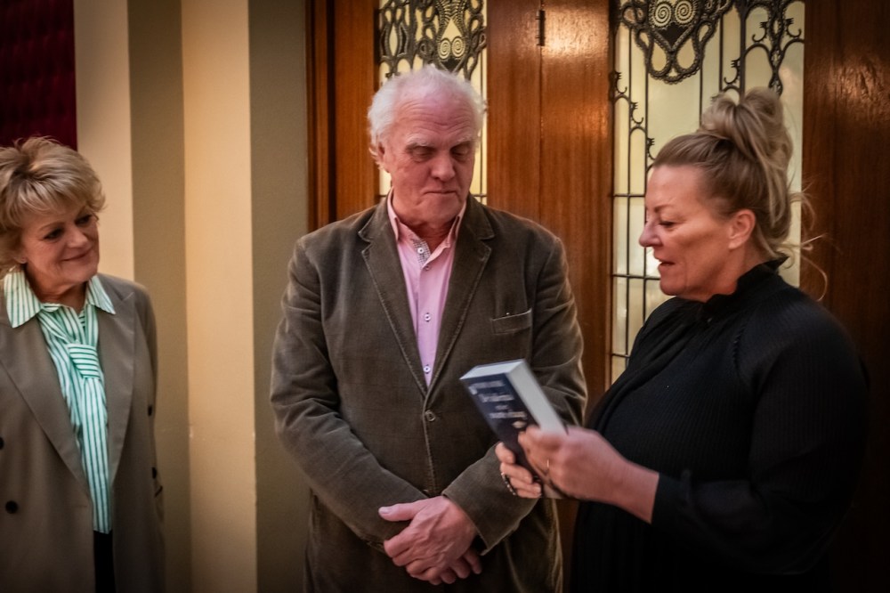 Wendy Louise overhandigde de eerste exemplaren van De ballerina en het zwarte schaap aan Sandor en Simone Kleinsma.