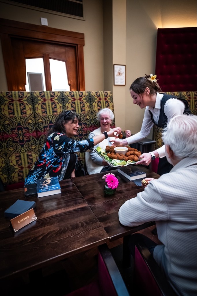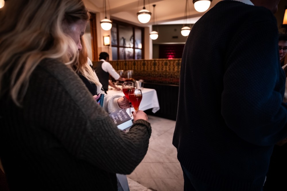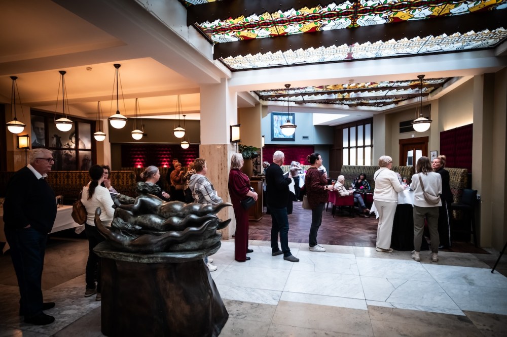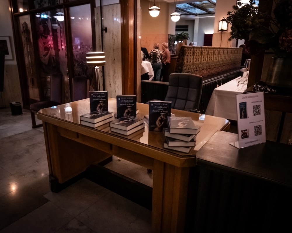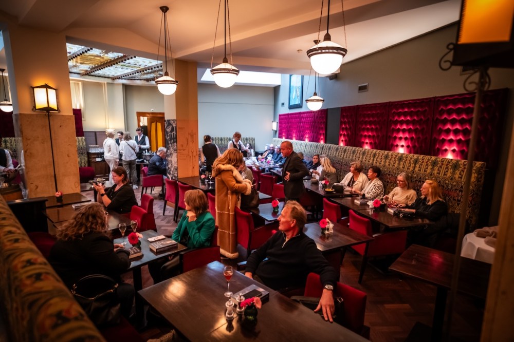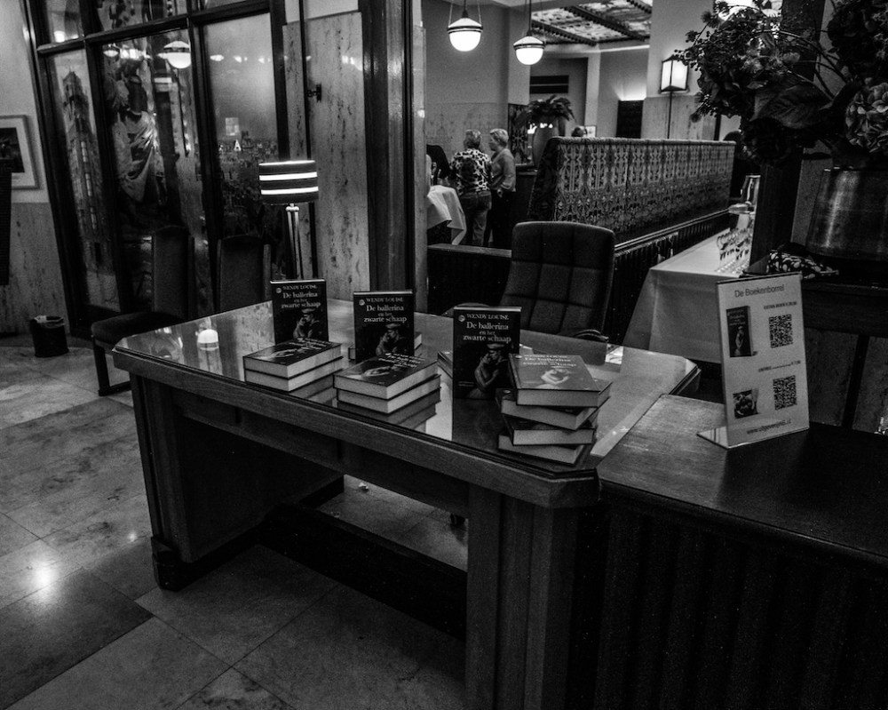 De Boekenborrel vond plaats in het knusse restaurant van Grand Hotel Amrâth Amsterdam. Dit indrukwekkende gebouw was vroeger het Scheepvaarthuis. Inderdaad, daar waar Ronald in hoofdstuk 31 zijn plunjezak ophaalt.