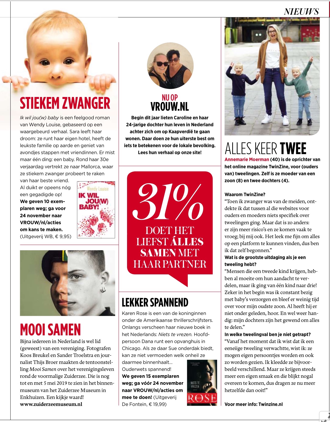 Interview Wendy LouiseInterview in Vrouw MagazineInterview in het GezinsbladLeestip in de TelegraafAls “local heroe” in de Libris nieuwsbriefInterview bij Radio NH GooiLeestip in het Campinglife MagazineLeestip in Por Favor MagazineLeestip in de VivaInterview in Vrouw Magazine